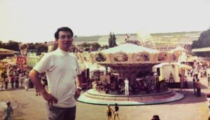 日曜日にはキリアーニ・フォルクフェストへと案内してもらいました。7世紀ヴュルツブルク初代司教となった聖キリアヌスを祝うお祭りです。マイン川の向こうにある移動遊園地の中に観覧車、メリーゴーランド、ゴーカート、ジェットコースター、ポニー乗り場と大規模な娯楽設備が繰り広げられ、ビール園もあります。子供にかえって大貫隆さんと宇宙船に乗れば、回転軸が縦から横へと傾き、行きつくところ真っ逆様になるかと思うほどでしたが遠心力で落ちはしません。足もとがふらつきながら即席遊園地をあとにします。