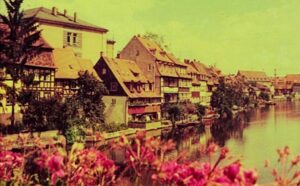 珍しく戦火を逃れた、淡い赤、青、緑、黄とカラフルなおもちゃの様な家並みが続くバンベルク。シラー広場のホフマンの生家や川の中州に建つ旧市庁舎が印象的でした。