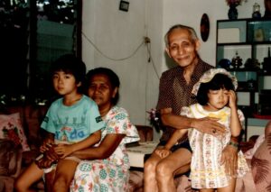 例えば、彼は、夕食の後にエンデの町内に住んでいた長女一家を毎日訪ねていた。1キロくらいの道を懐中電灯で照らしながら、ゆっくり歩いていった。長女には、11歳から3歳の5人の子供がいた。子どもたちは、「ウイス兄さん」と呼びかけておじいちゃんの来訪を毎回歓迎した。孫たちが交互に膝に乗ってくるなか、彼は長女の話に耳を傾けた。30分余りすると、彼は帰途についた。祝福するといった形式ばったものではなかったが、たしかに、形のないプレゼントを届けていた。