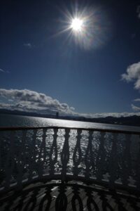 新春の眩しい太陽のおかげで、甲板にいても寒くない。